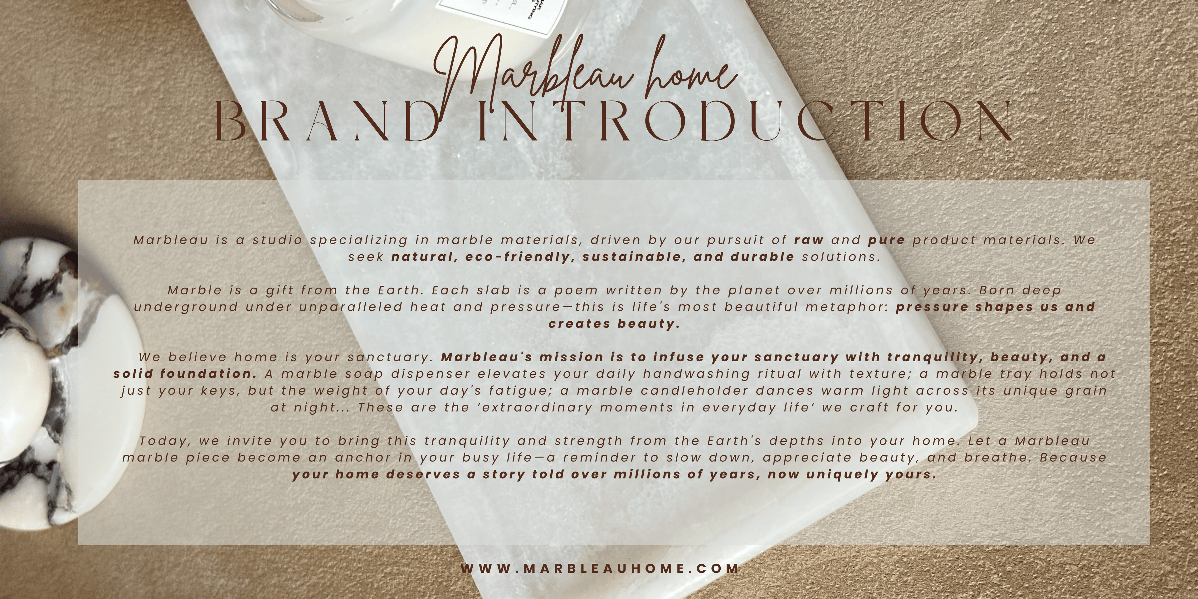 We reject uniformity. "We are obsessed with marble's irreplicable patterns, for they are time's brushstrokes, nature's signature. This means every Marbleau Studio piece you own is a one-of-a-kind work of art. Each creation speaks for itself, possessing its own distinct character and personality. Perfect as a gift to commemorate that special day or for that special someone.